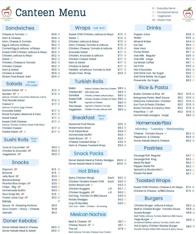 Our school canteen offers healthy, affordable food options for students. Learn about our canteen opening hours, our menu and how to order lunch.